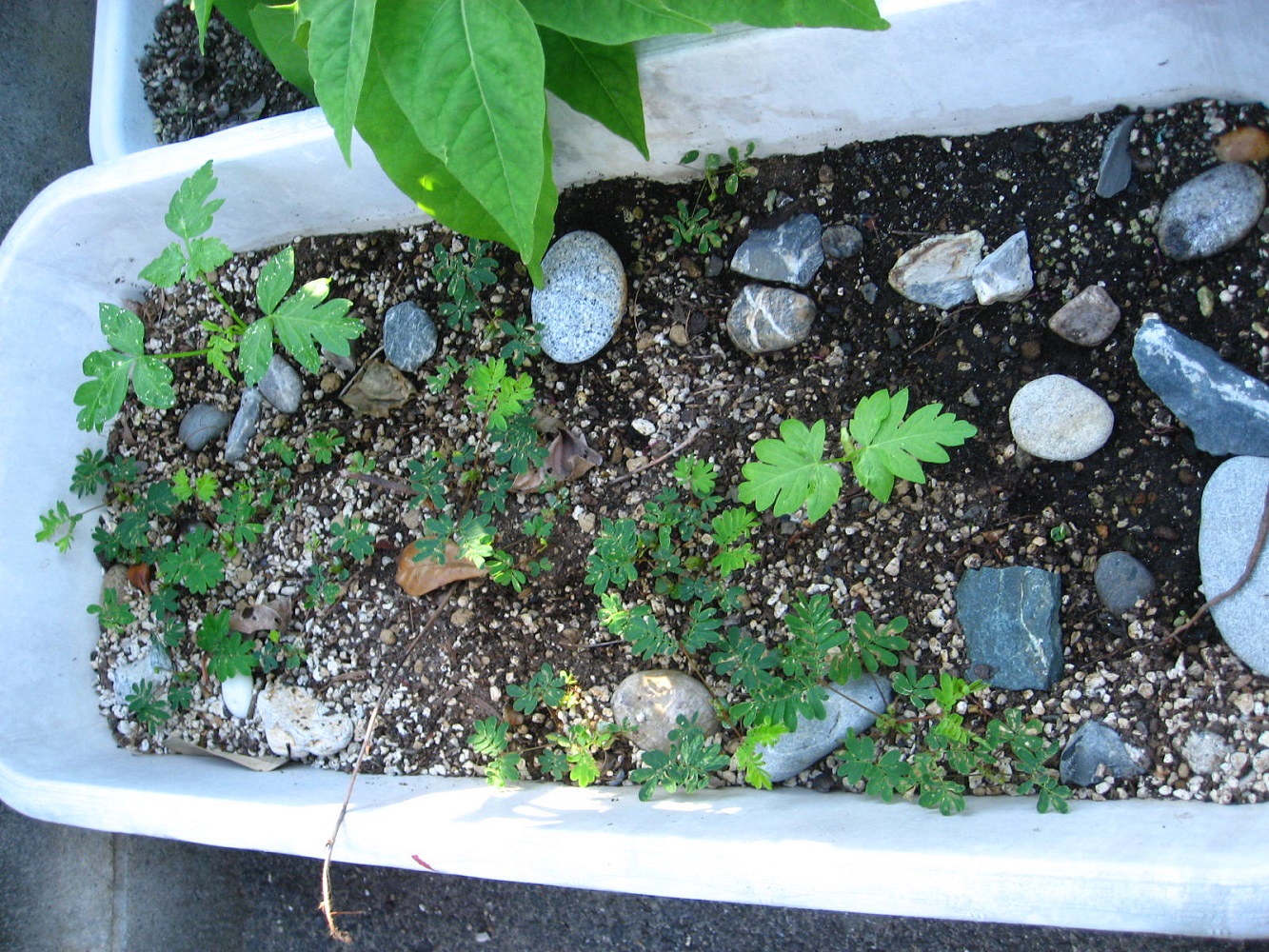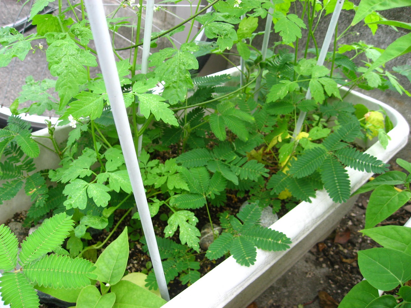 まずはオジギソウのプランター。えらいことになっています。
